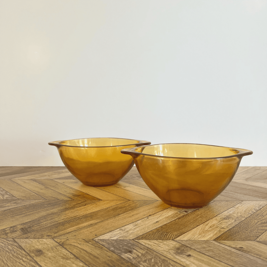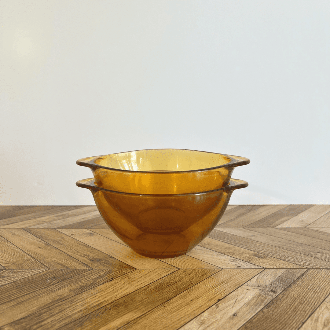 Deux bols à oreilles en duralex de couleur ambrée typique des années 70’s