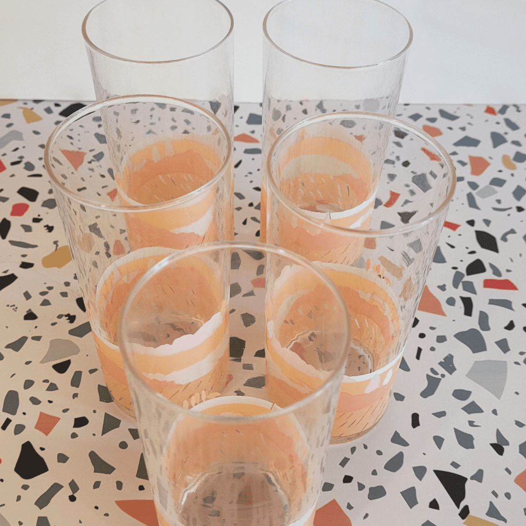 Ensemble de 5 verres à orangeade années 80 ALPAC