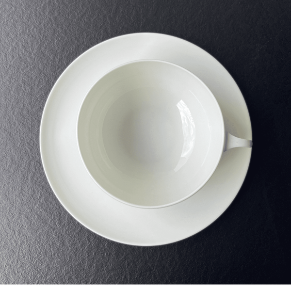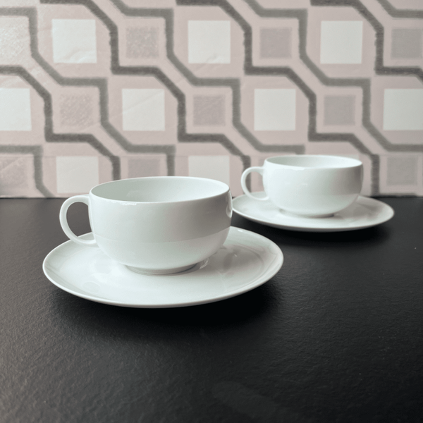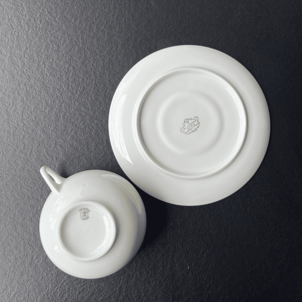 Ensemble composé de 8 tasses à café et soucoupes en porcelaine blanche de Limoges d'une grande finesse et au charme indémodable.