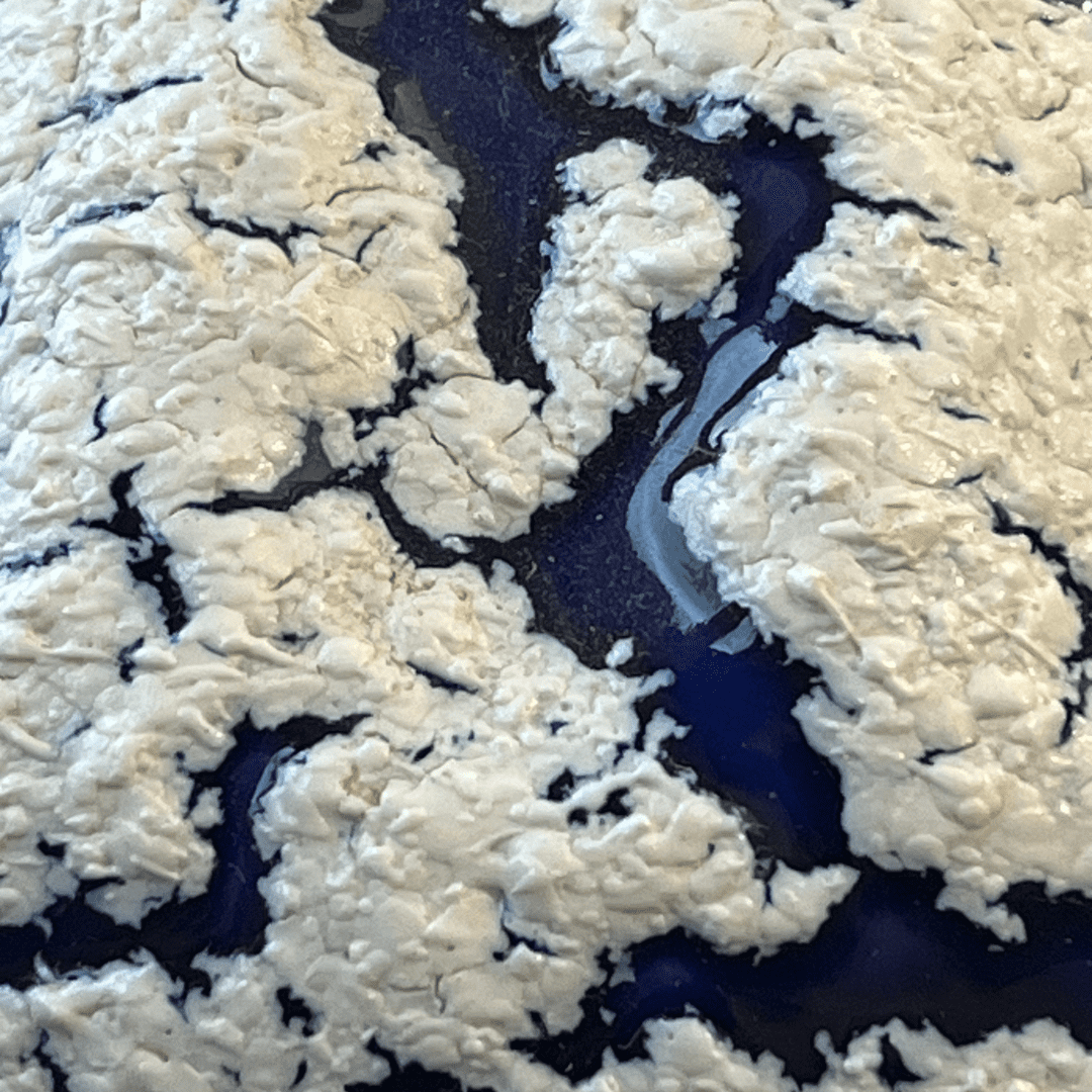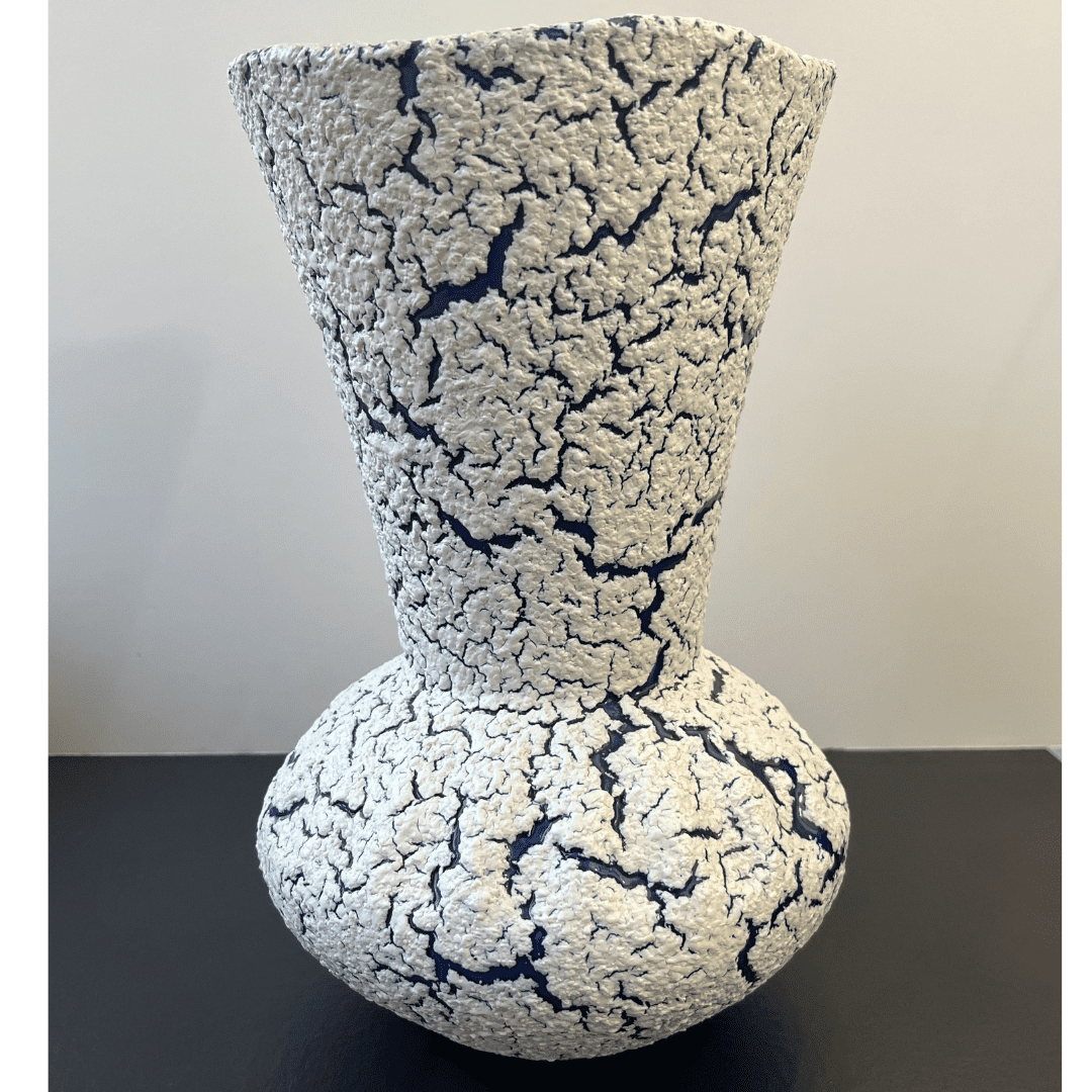 Grand vase craquelé blanc et bleu "Fat Lava "signé Garvarnie (France).