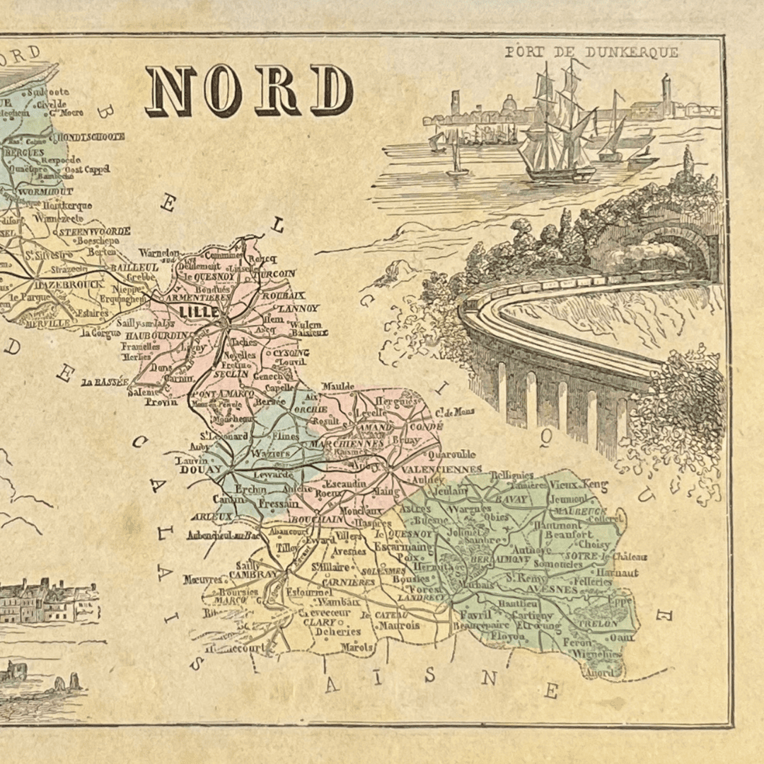Carte originale ancienne entoilée sur coton du département du Nord.