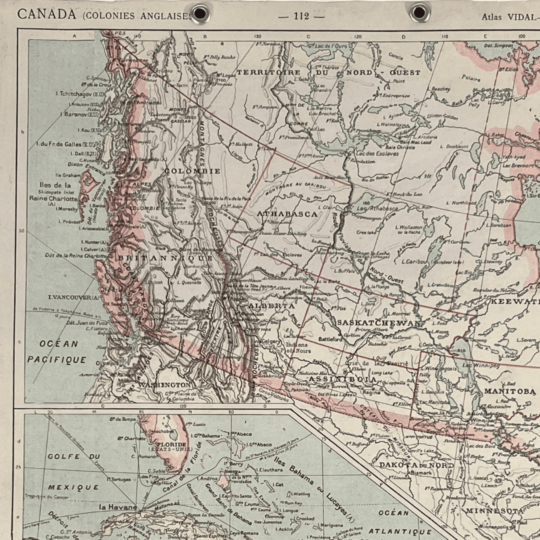 Carte Vidal-Lablache du Canada (Colonies Anglaises - début XXème)