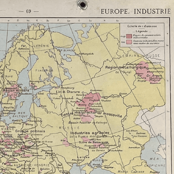 Carte originale ancienne entoilée sur coton Vidal-Lablache : Europe Industrie