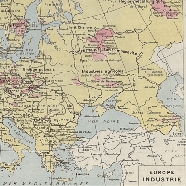 Carte Vidal-Lablache Europe Industrie (début XXème)