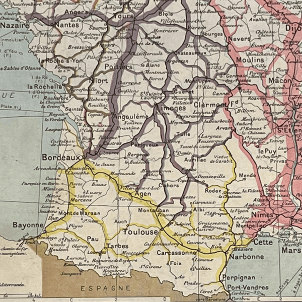 Carte Vidal-Lablache France Chemins de fer (début XXème)