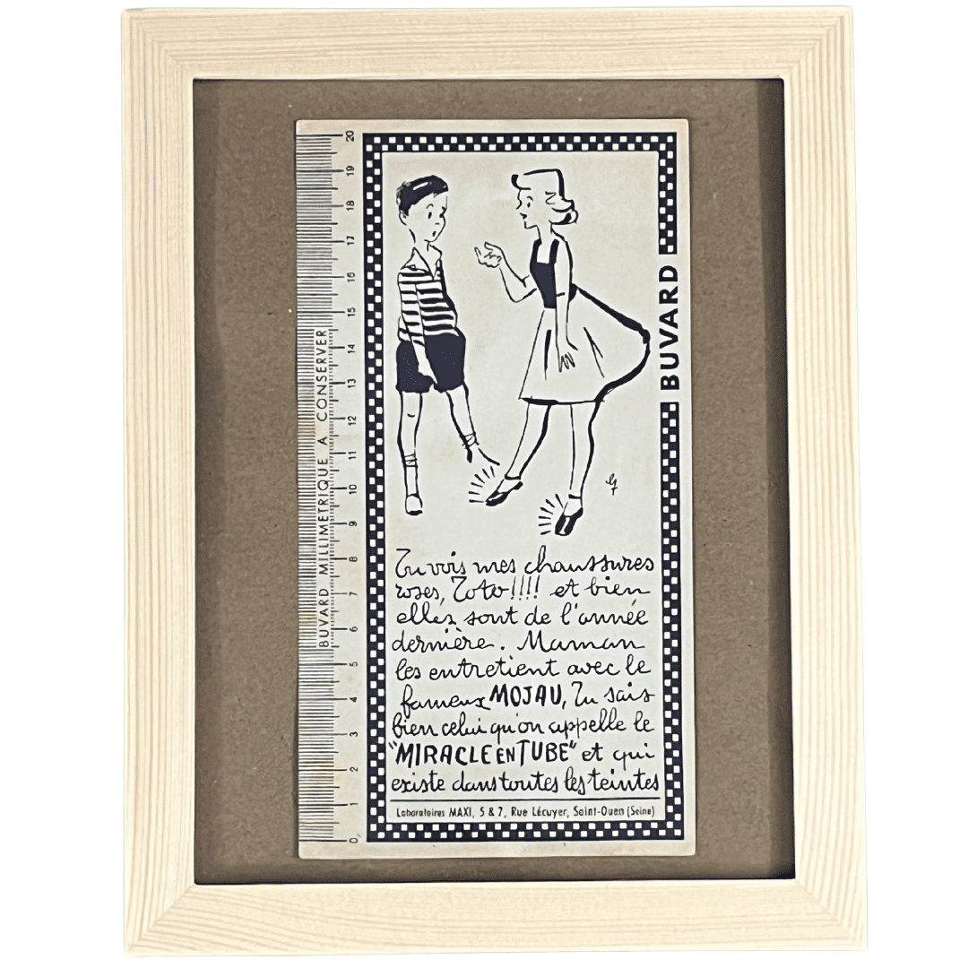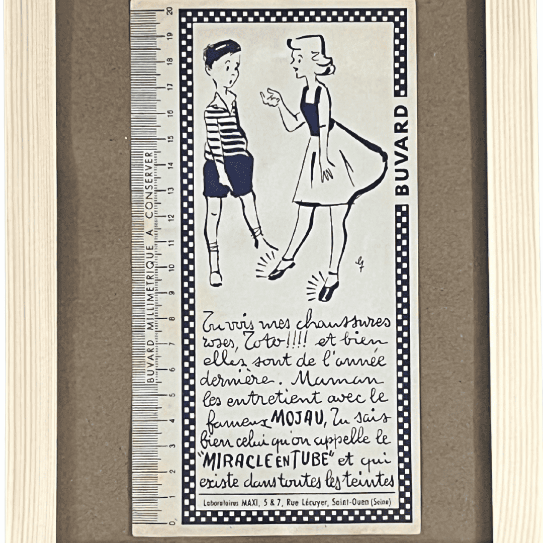 Ce buvard pubicitaire original date des années 50. Quelle belle surprise pour Toto que de découvrir les bienfaits du "Mojau".