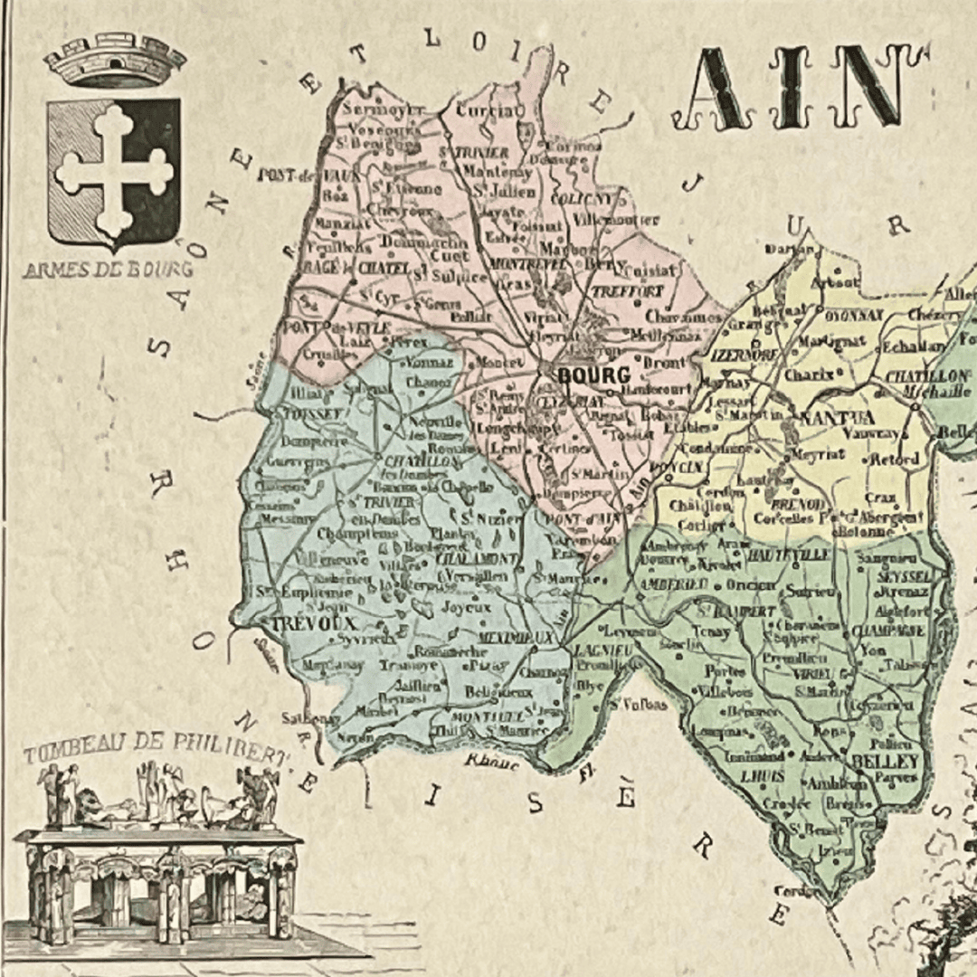 Carte originale ancienne entoilée sur coton du département de l'Allier.