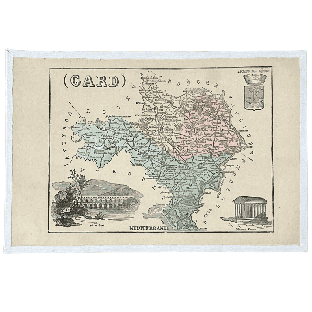 Carte originale ancienne entoilée sur coton du département du Gard.