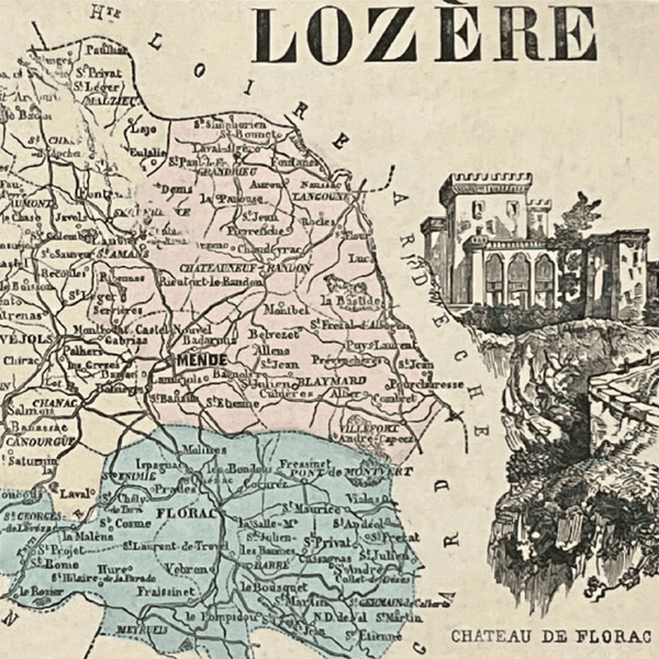 Carte originale ancienne entoilée sur coton du département de la Lozère.