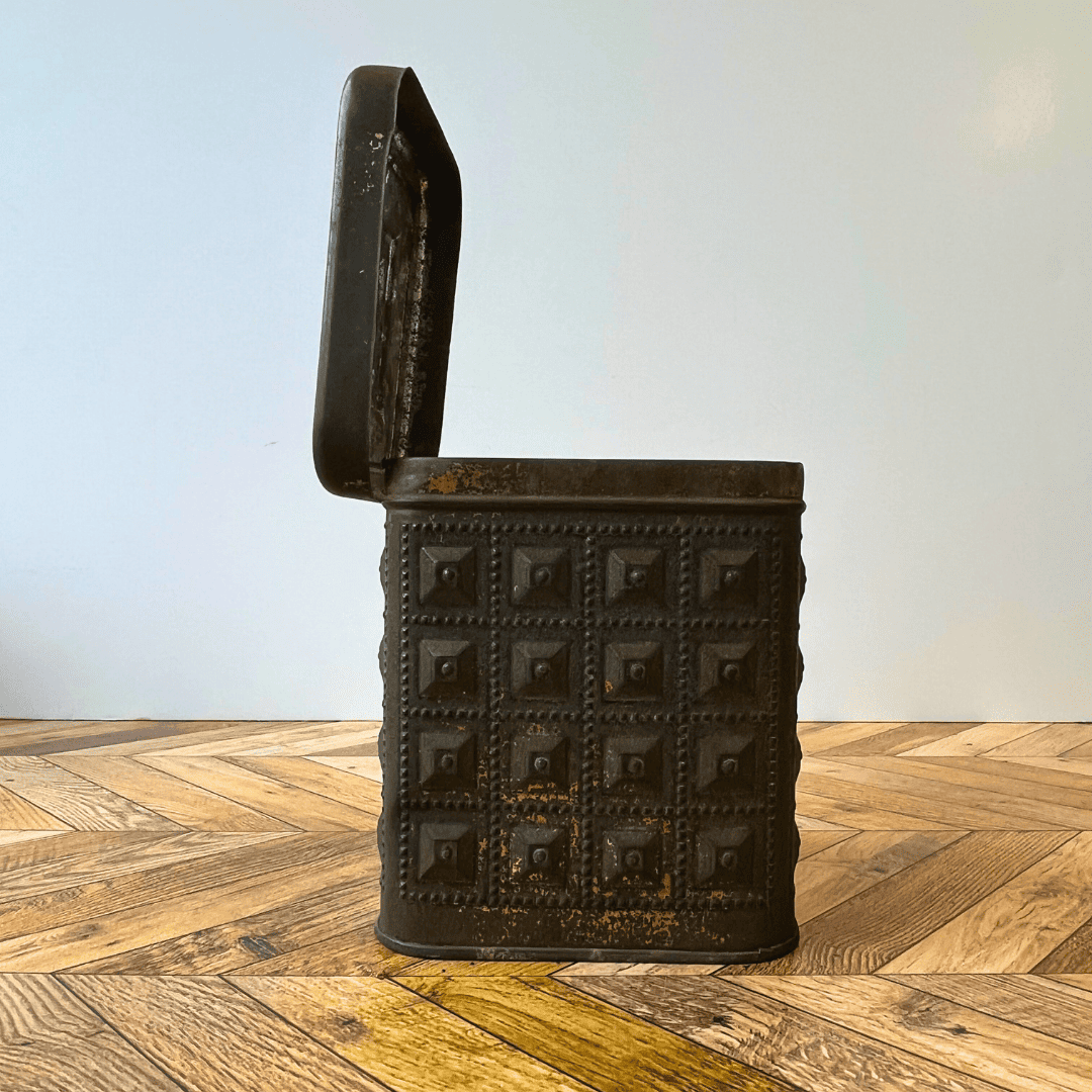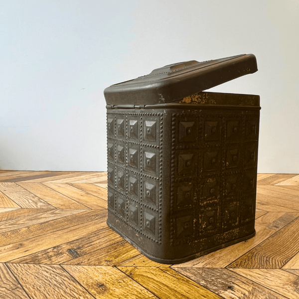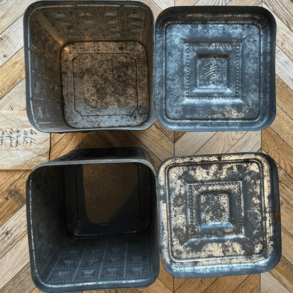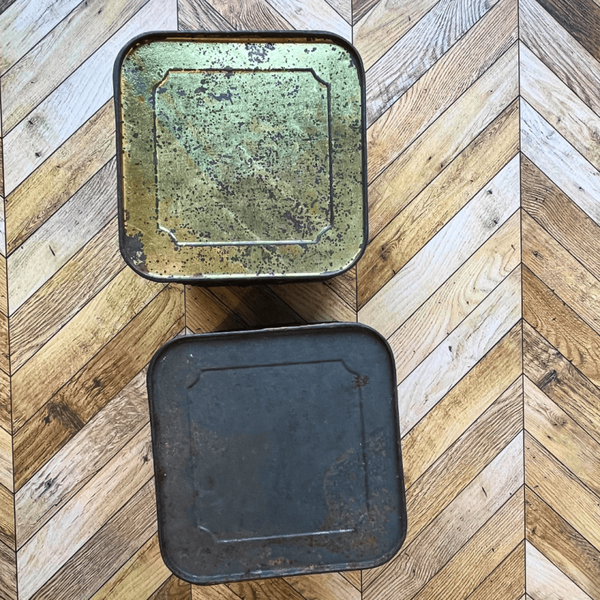 Ensemble composé de deux superbes boîtes en métal datant des années 40. J'ai décidé de vous les proposer avec leurs patines mais il est possible de retrouver le doré initial sans trop d'effort.