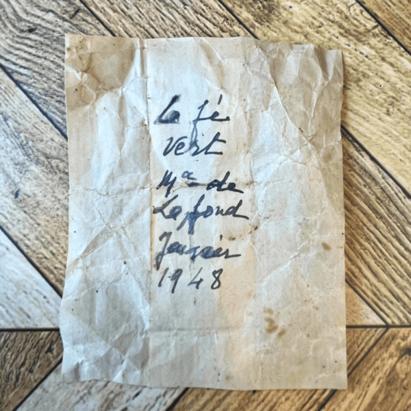Pour la petite histoire, quand j'ai déniché ces boîtes, l'une était remplie de grains de café vert et l'autre de thé noir. vous pouvez voir sur la dernière photo, le petit papier qui était au-dessus du café : " Le café Vert - Monsieur Lafond - Janvier 1948".