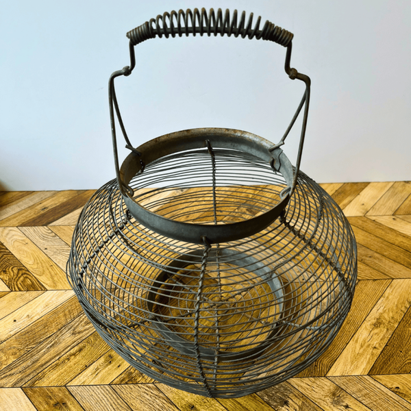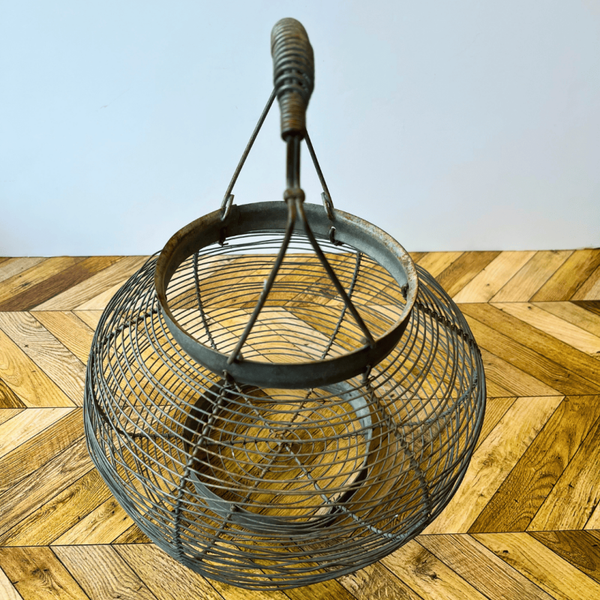 Panier rond à œufs ou panier à salade en fil de fer datant des années 20 - 40.