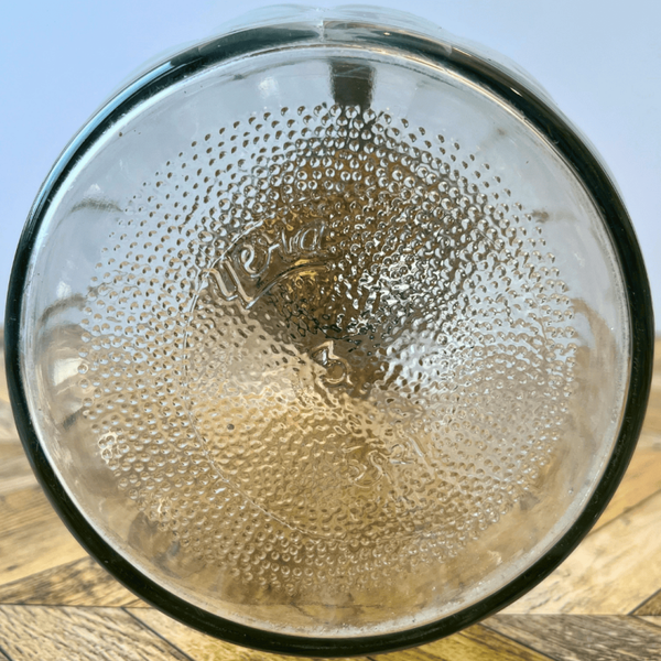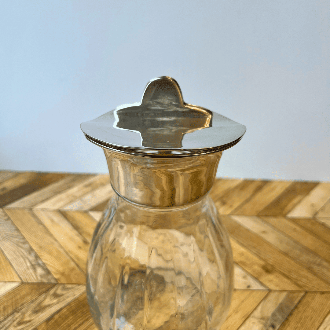 Carafe / pichet en verre avec poignée et couvercle en métal argenté