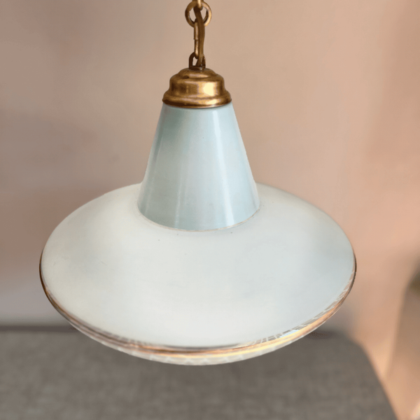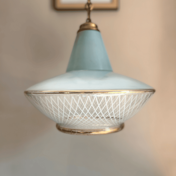 Dimensions : diamètre de l'opaline environ 25 cm, hauteur de l'opaline environ 25 vm, longueur de la chaine 19 cm.