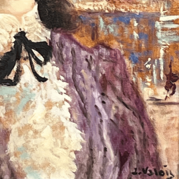 Jean Valois, artiste du 20ème siècle, est connu pour la réalisation de nombreux portraits de jeunes élégantes avec en arrière plan des lieux iconiques de Paris.