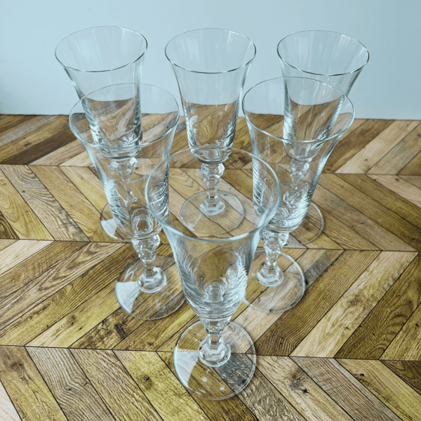 Emsemble composé de 6 flûtes à Champagnes en verre