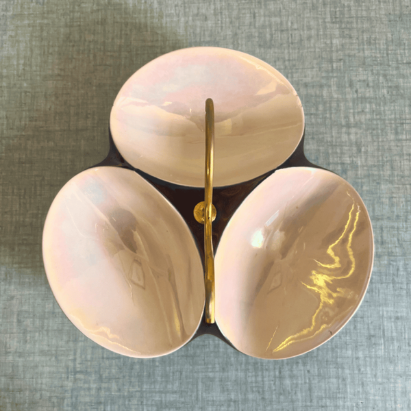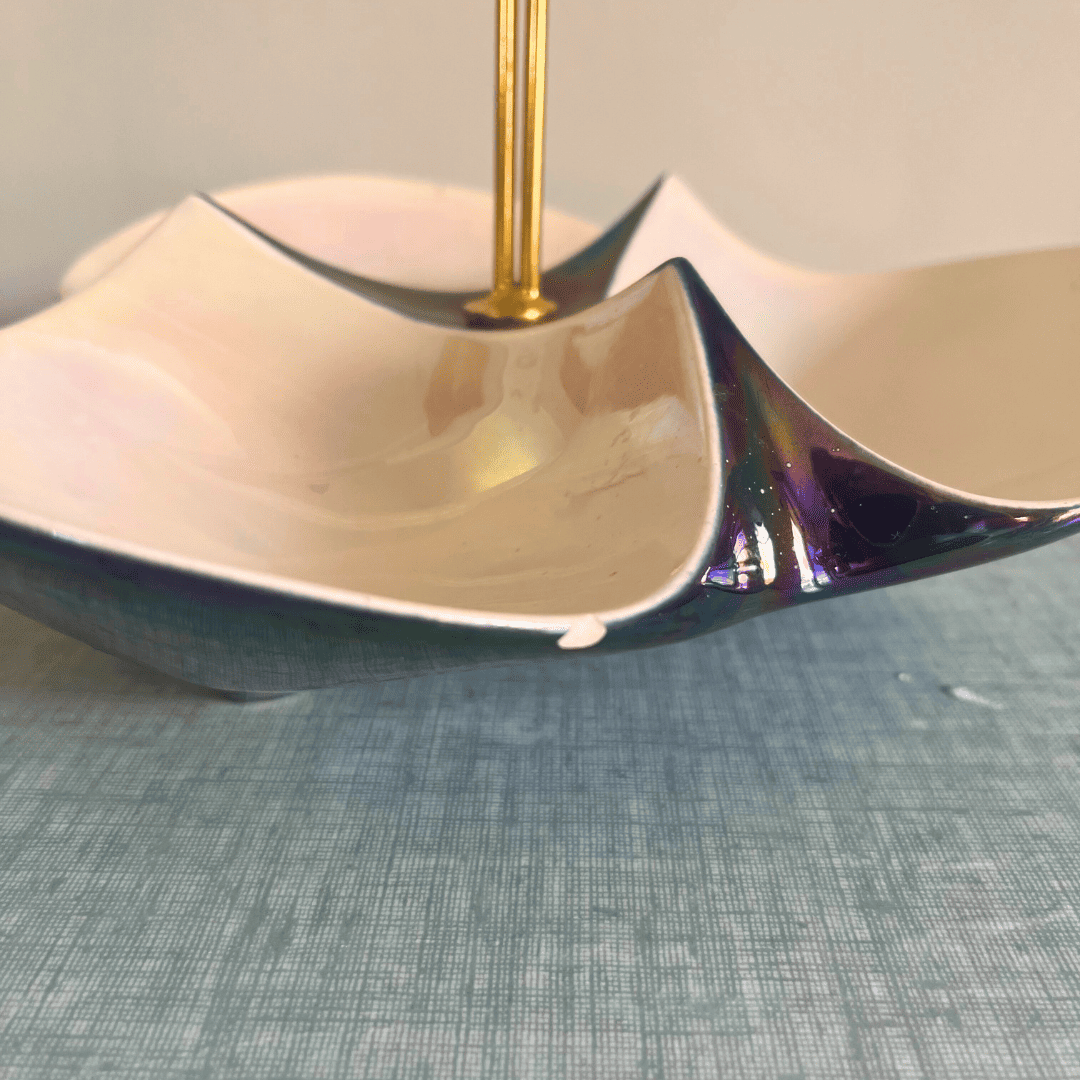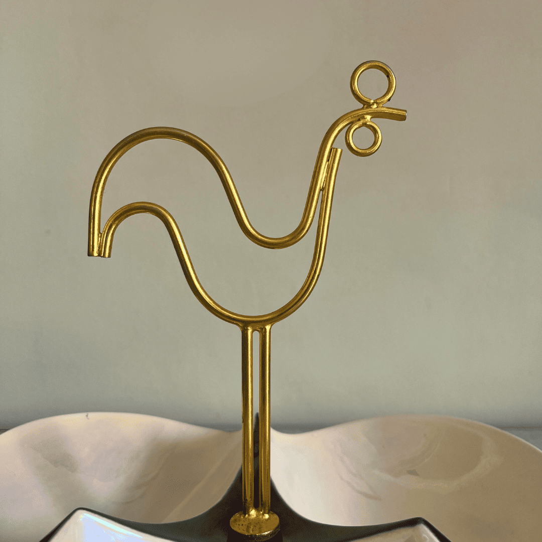 Superbe serviteur avec son coq en métal et sa faïence nacrée datant des années 50 / 60.