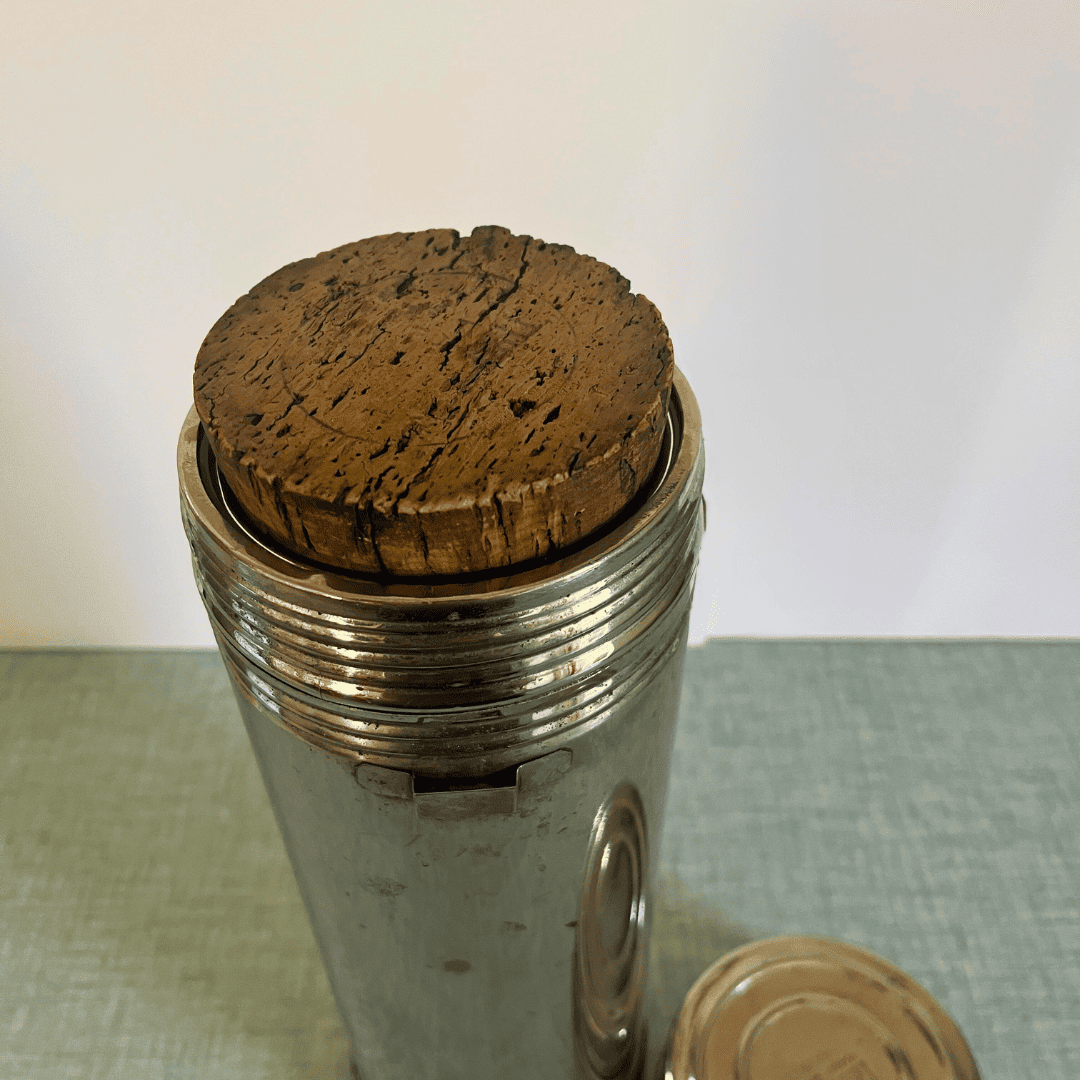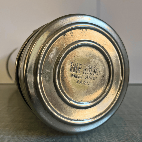 Bouteille thermos vintage datant des années 60. Elle est en parfait état de conservation et peut tout à fait être utilisée au quotidien.