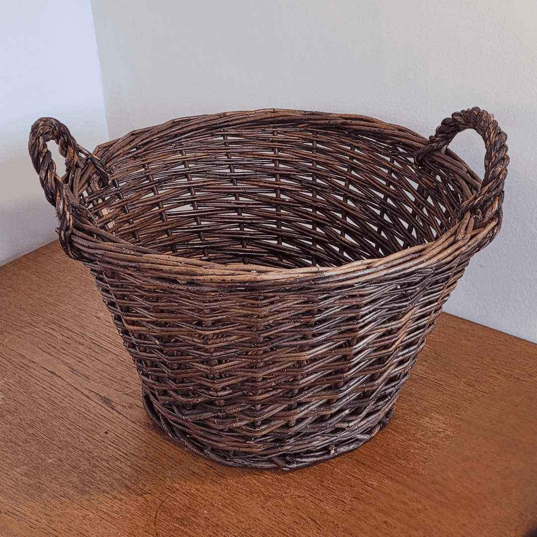 Grande corbière ancienne tressée en noisetier pour les amoureux des arts populaires et des beaux objets